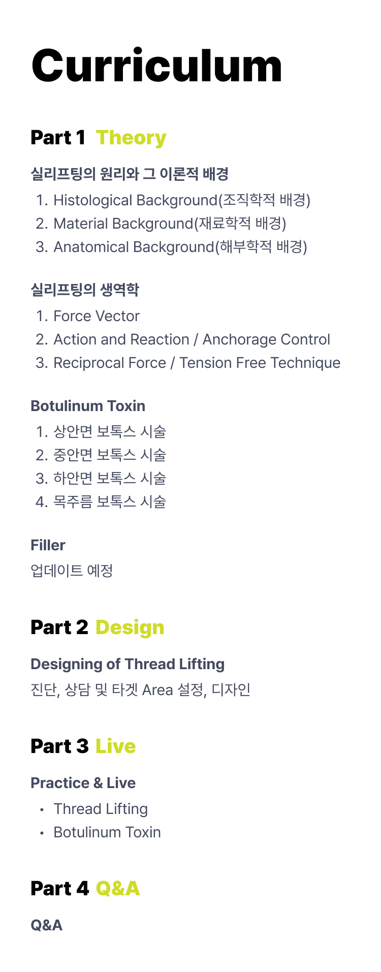 본 실전세미나는 실리프팅의 기본 원리와 기술을 체계적으로 학습하여,